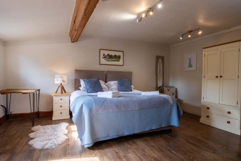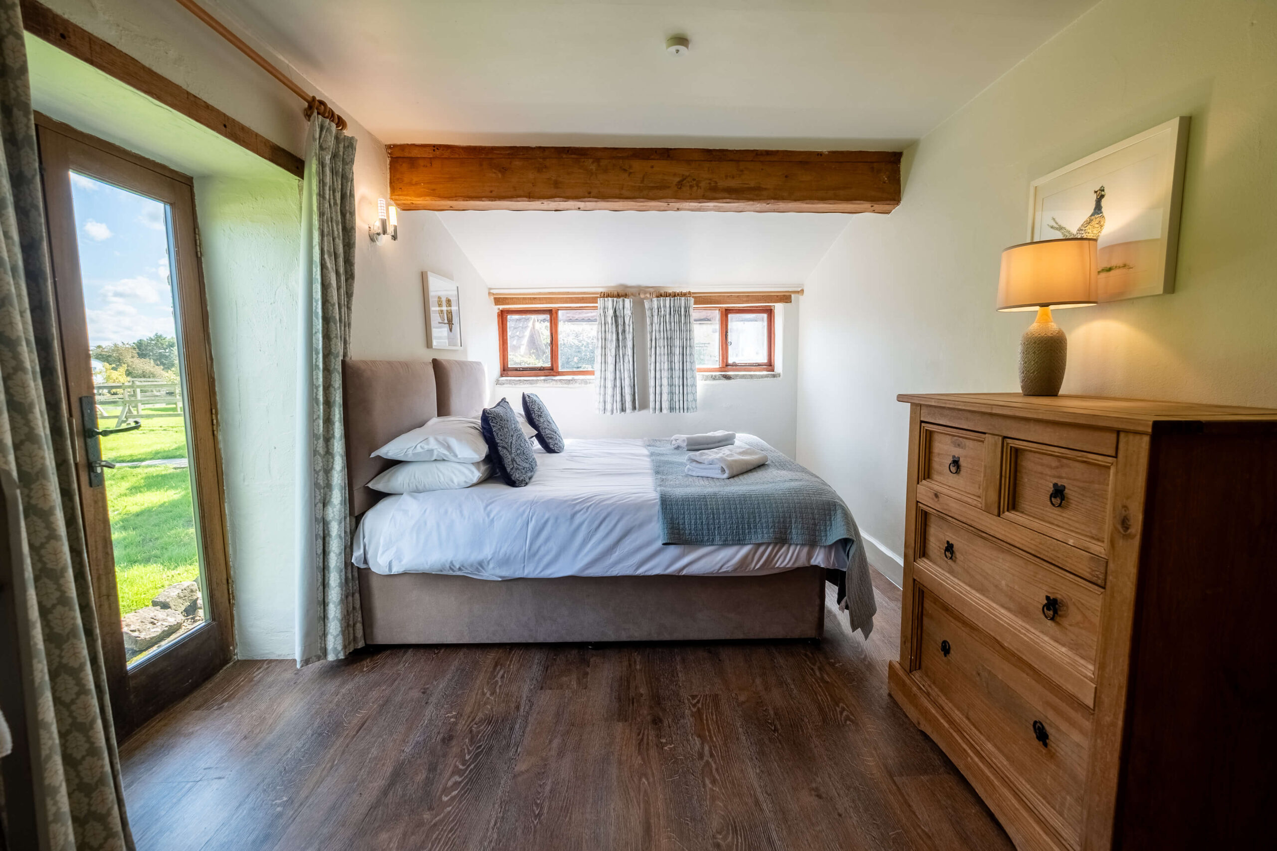 King Size bedroom, bathroom with shower in bath. Option of extra single bed. Dog friendly.